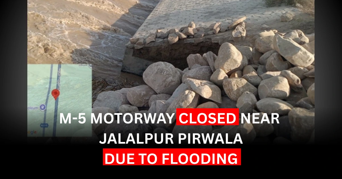The M-5 Motorway has been closed near Jalalpur Pirwala after heavy flooding damaged road sections and created a serious erosion risk. Authorities confirmed the closure to prevent a possible breach risk and ensure public safety. The Motorway Police, in collaboration with the National Highway Authority (NHA) and PDMA (Punjab Disaster Management Authority), are supervising emergency work. Sandbags and...
