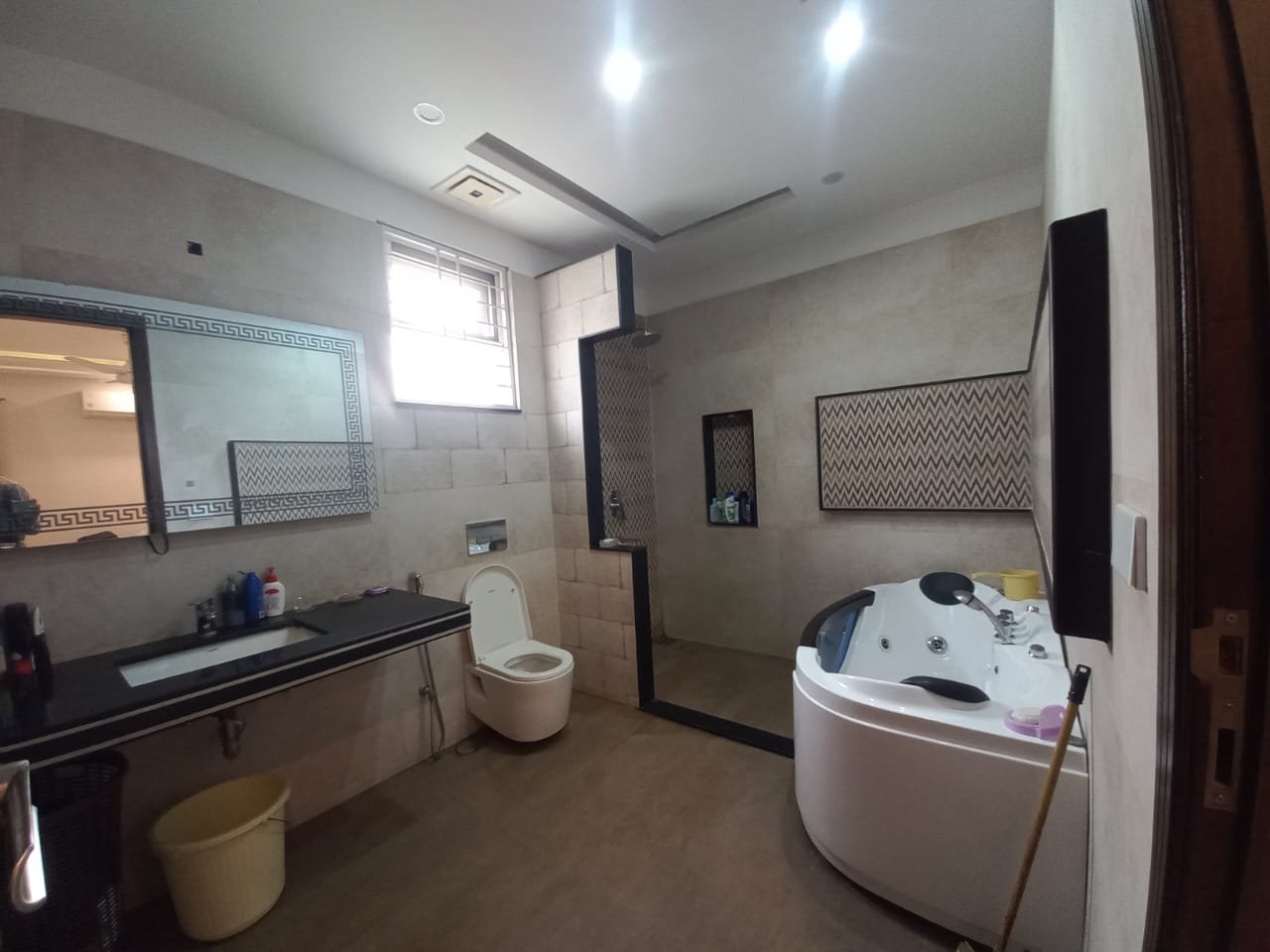 Good sizes of washrooms with large wardrobes in it.